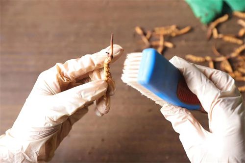 2. 清洗處理:將冬蟲夏草放入溫水中浸泡片刻,輕輕刷洗表面,去除泥沙和雜質(zhì)。