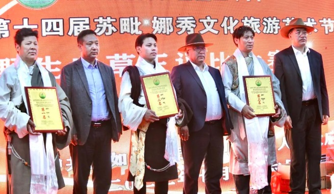 經(jīng)過(guò)評(píng)比,茶曲鄉(xiāng)茶久的蟲(chóng)草以整體質(zhì)量最佳獲得蟲(chóng)草鮮草單斤第一名,第二名和第三名則是來(lái)自茶曲鄉(xiāng)的曲嘎和夏曲鎮(zhèn)的羅杰;獲得蟲(chóng)草陳草單斤第一名的是來(lái)自達(dá)塘鄉(xiāng)的貢嘎,達(dá)塘鄉(xiāng)的索朗達(dá)杰榮獲第二名,茶曲鄉(xiāng)的措白為第三名,出席領(lǐng)導(dǎo)為獲獎(jiǎng)選手頒獎(jiǎng)。